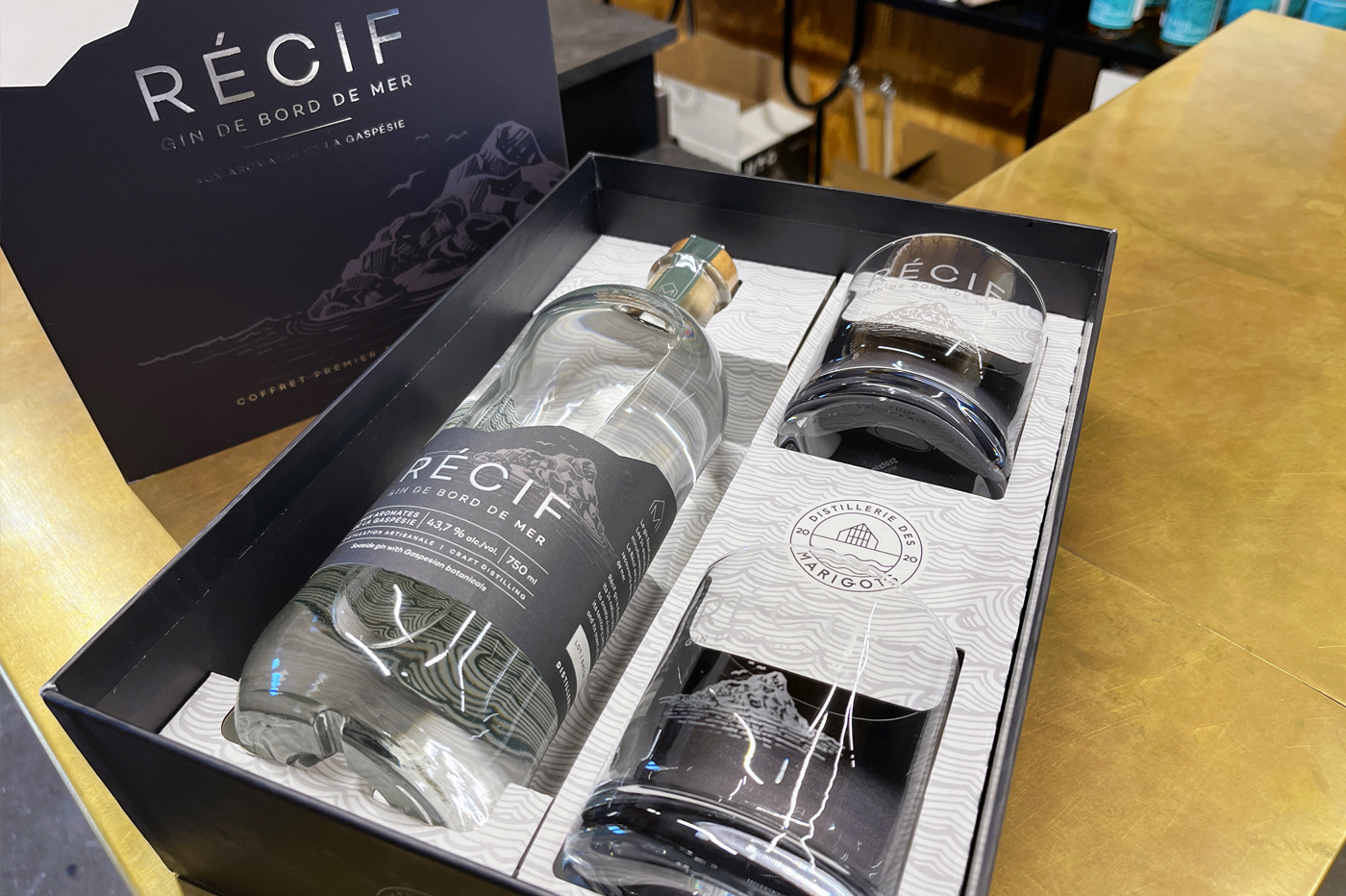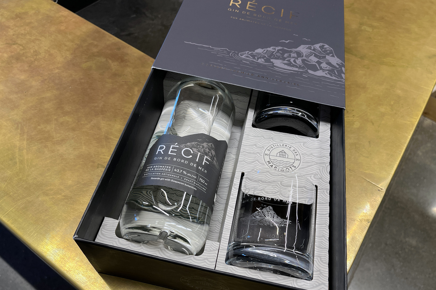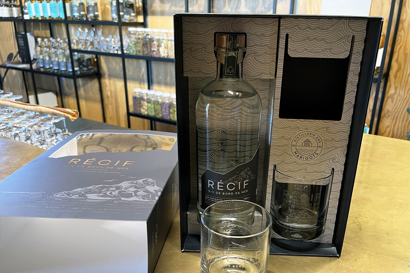 Design pour un coffret édition limité du gin Récif (Lot #001, 1er anniversaire) produit par la distillerie des Marigots.