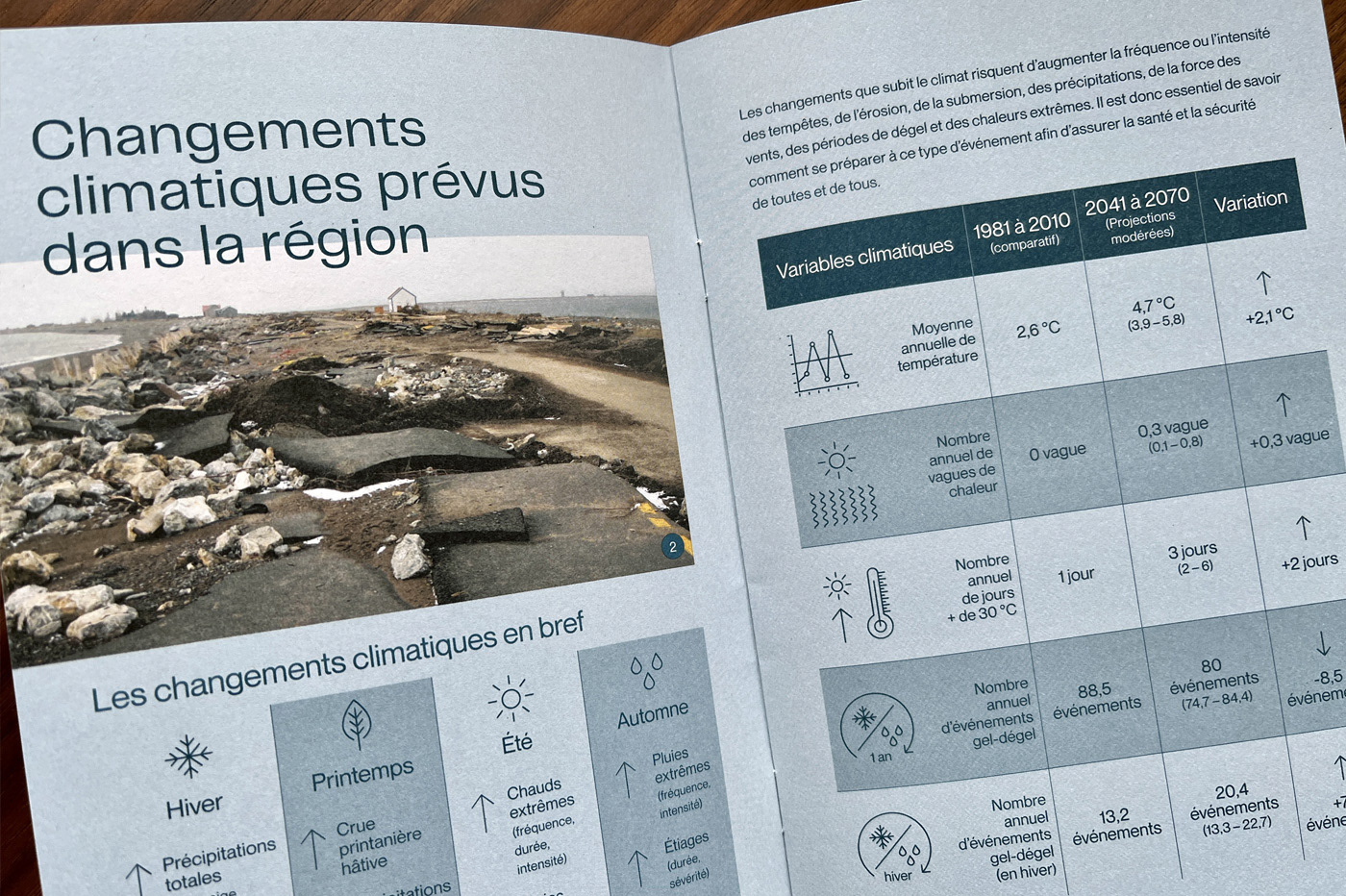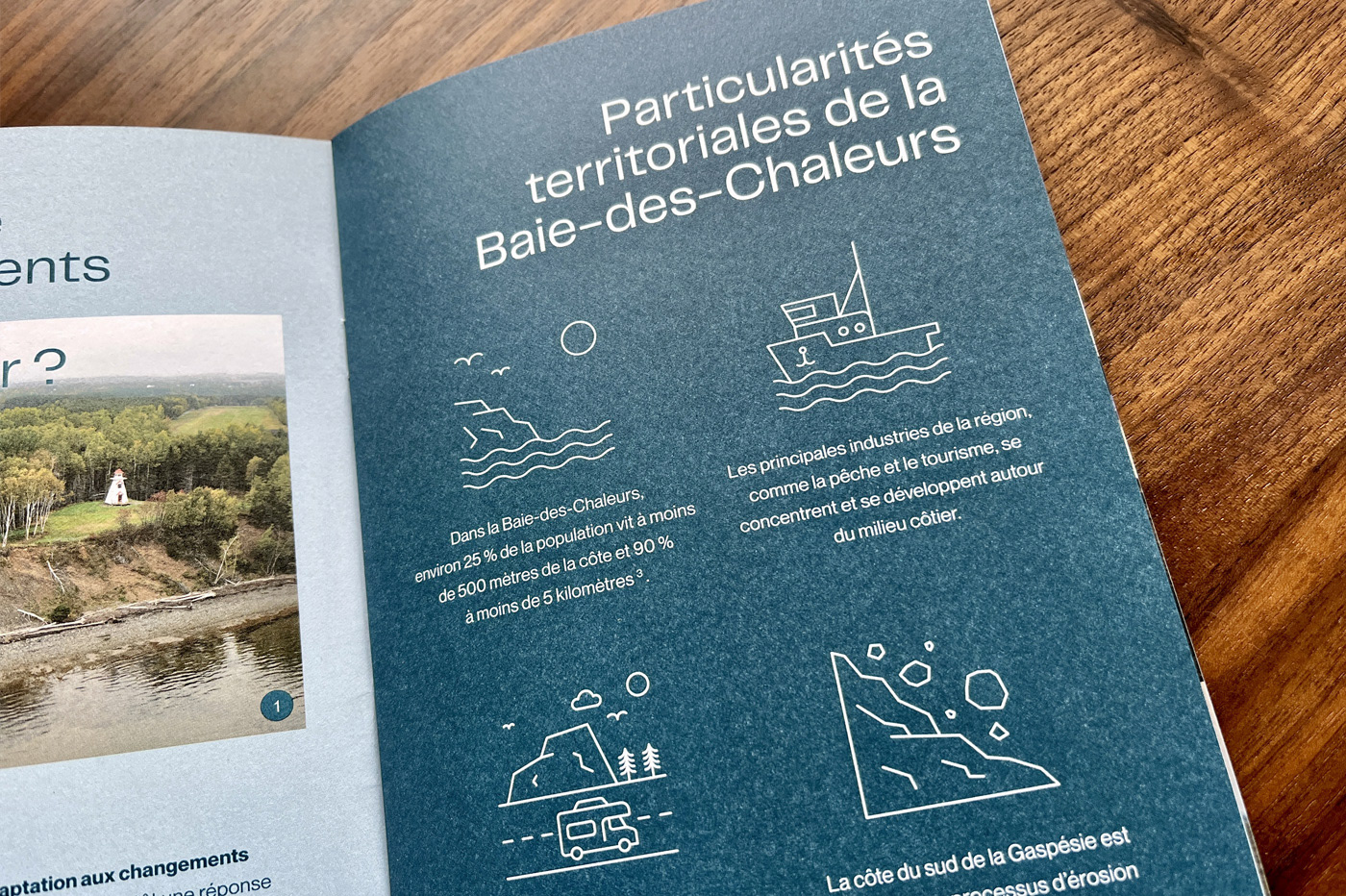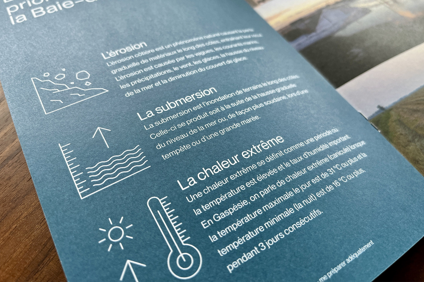 Brochure et icônes ayant pour but d'expliquer les changements climatiques et leurs effets direct sur les milieux maritimes.