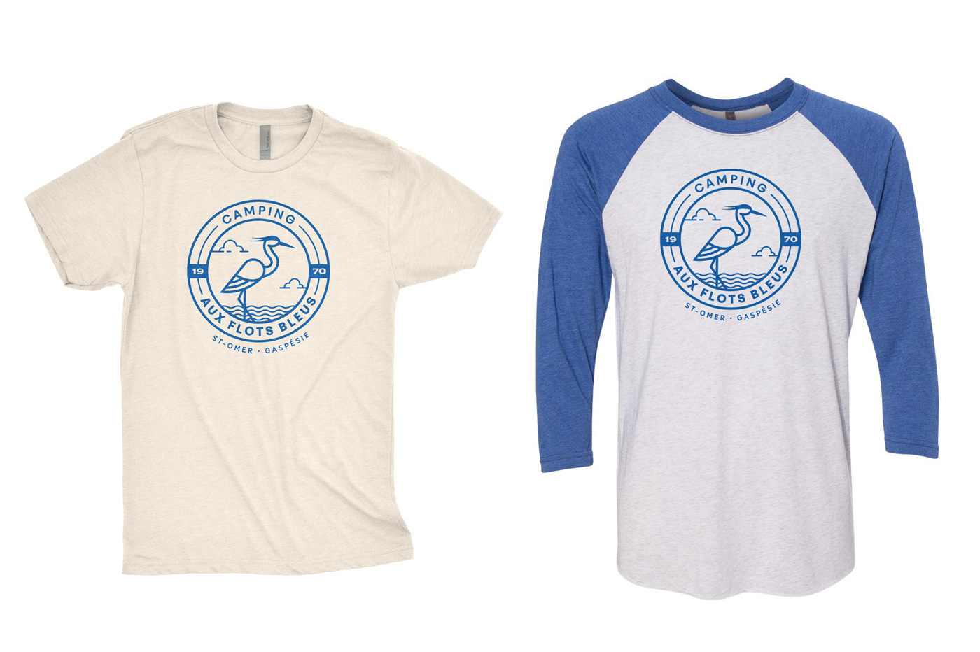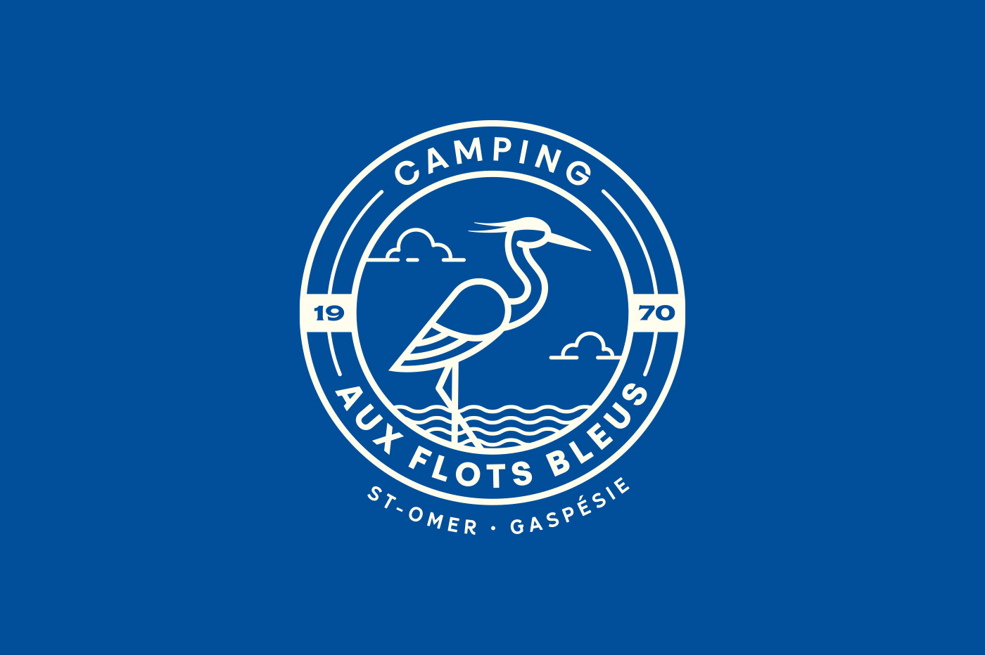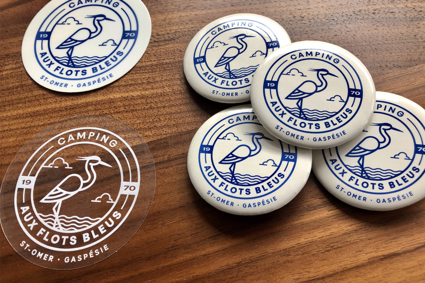 Identité visuelle et items promotionnelle pour un camping. Visual identity and promo items for a camping. Design Graphique: Sebastien Cantin Client: Camping Aux Flots Bleus (St-Omer, Québec, CA)