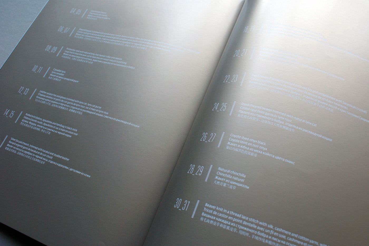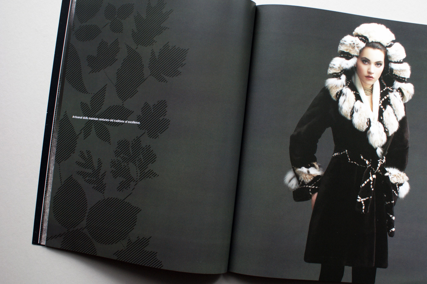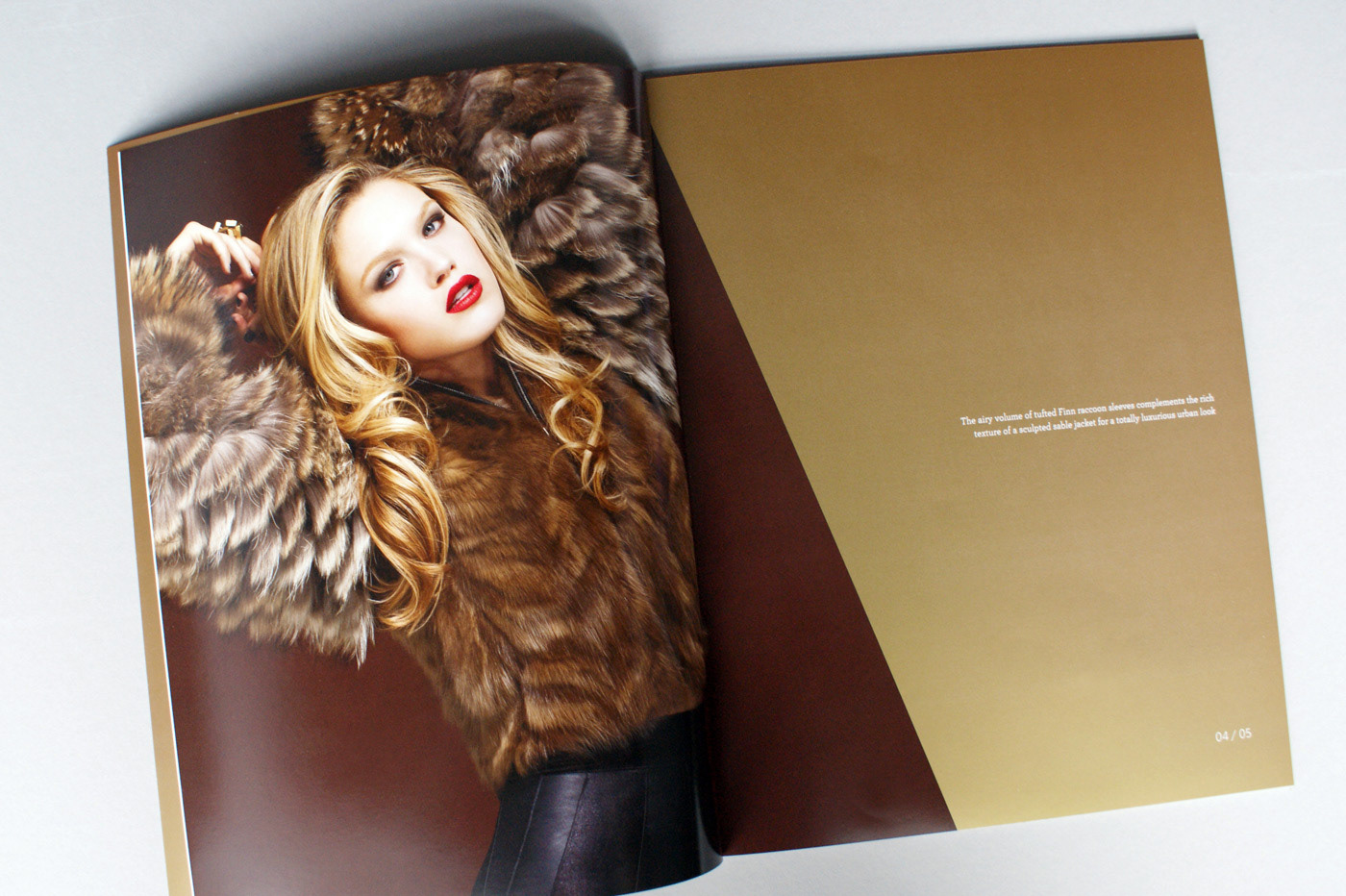 Catalogue of Canadian Fur Council. 2011-2013. Catalogue pour le Conseil Canadien de la fourrure, de 2011 à 2013. Agency: Imago Creative Director: Carl Gagnon Graphic Design: Sebastien Cantin Production Artist: Stéphanie Hamel Client: Canadian Fur Council (Montréal, Québec, CA)