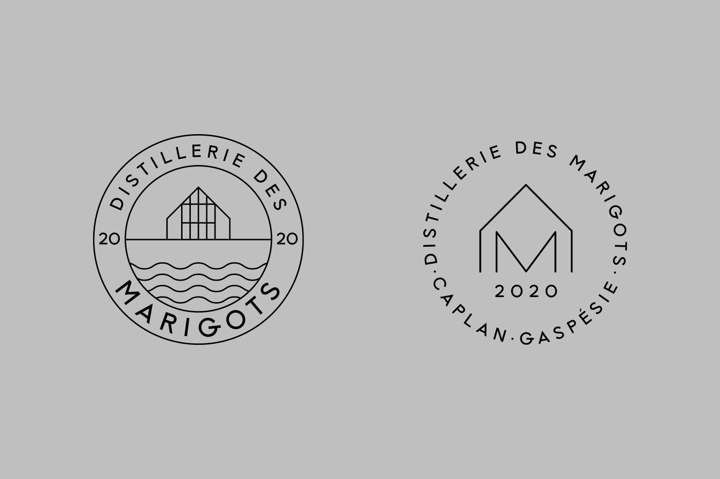 Identité visuelle pour une distillerie gaspésienne. Visual identity for a gaspesian distillery. Design Graphique: Sebastien Cantin Client: Distillerie des Marigots (Caplan, Québec, CA)