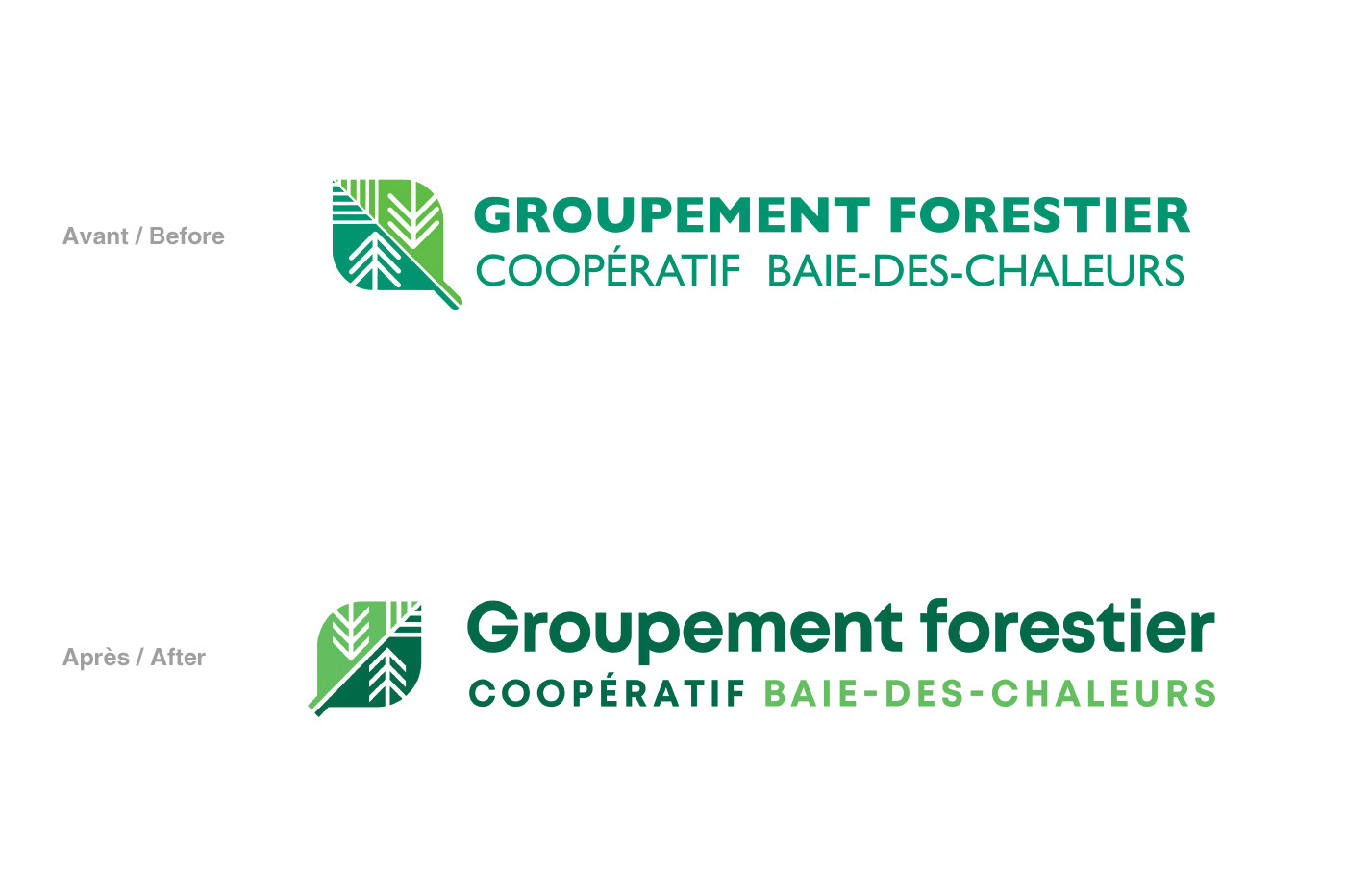 Mise à jour d'un logotype pour un regroupement forestier : redessiner le symbole, changement typographique, changements de couleurs, nouvelle version, etc...