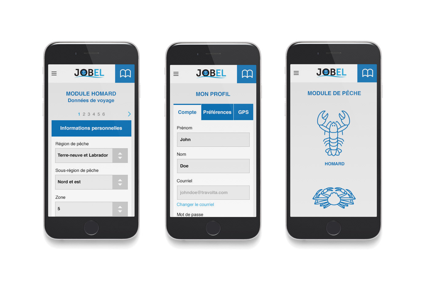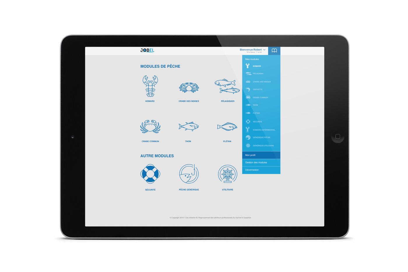 Web design and interface design for an online application for professional fishermen. (interface, icon and promotional material) Design web et design d'interface pour une application en ligne destiné aux pêcheurs professionnels. (Interface, icônes et matériels promotionnels) www.jobel.ca Design Graphique Graphic Design: Sebastien Cantin Gestion de projet: Priscilla Doiron Programmation web: jolifish.com Programmation app: Samuel Dubé-Roussy Client: Regroupement des pêcheurs professionnels du sud de la Gaspésie (Chandler, CA)