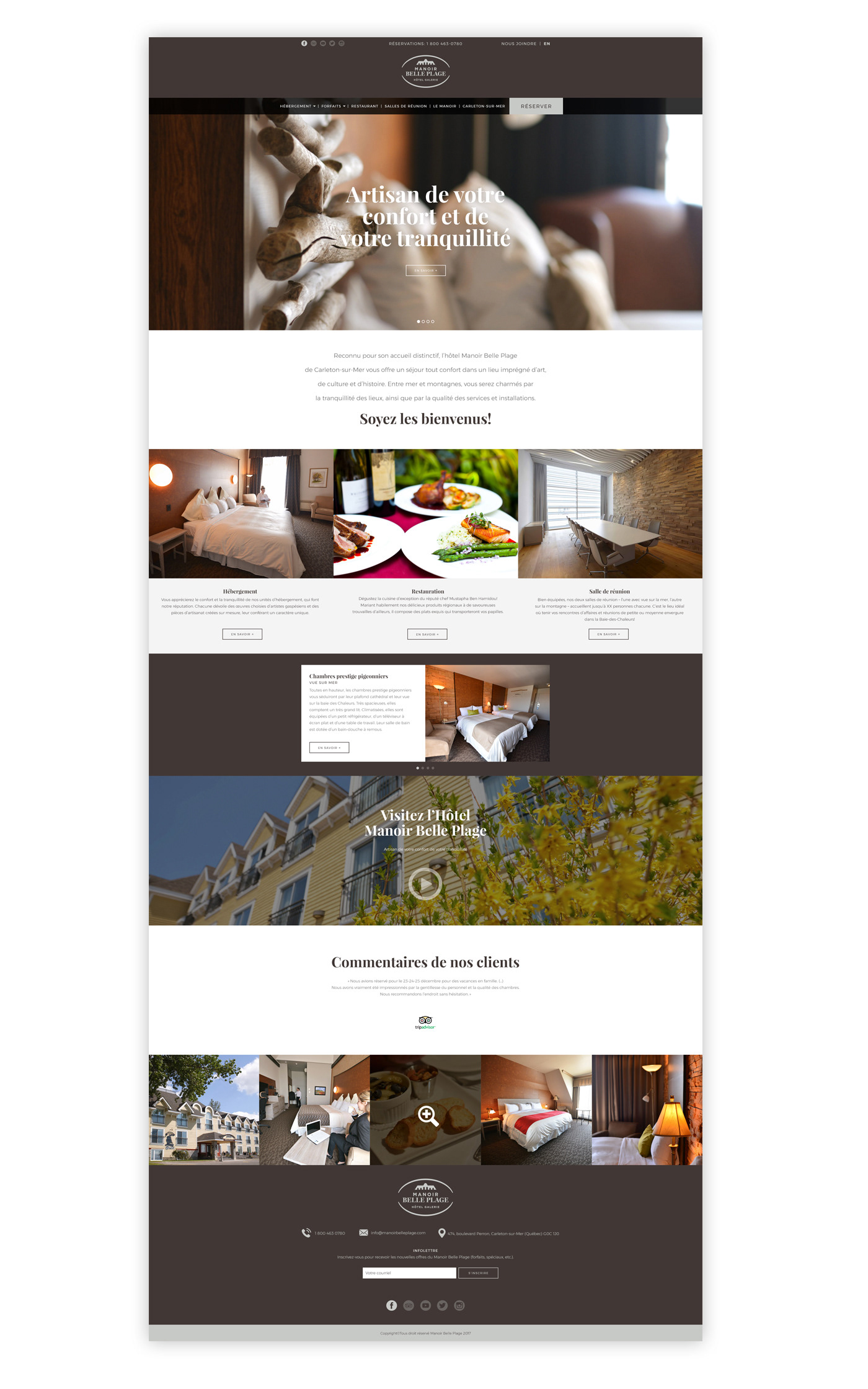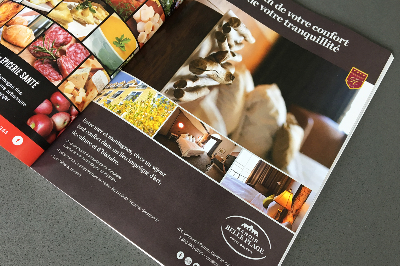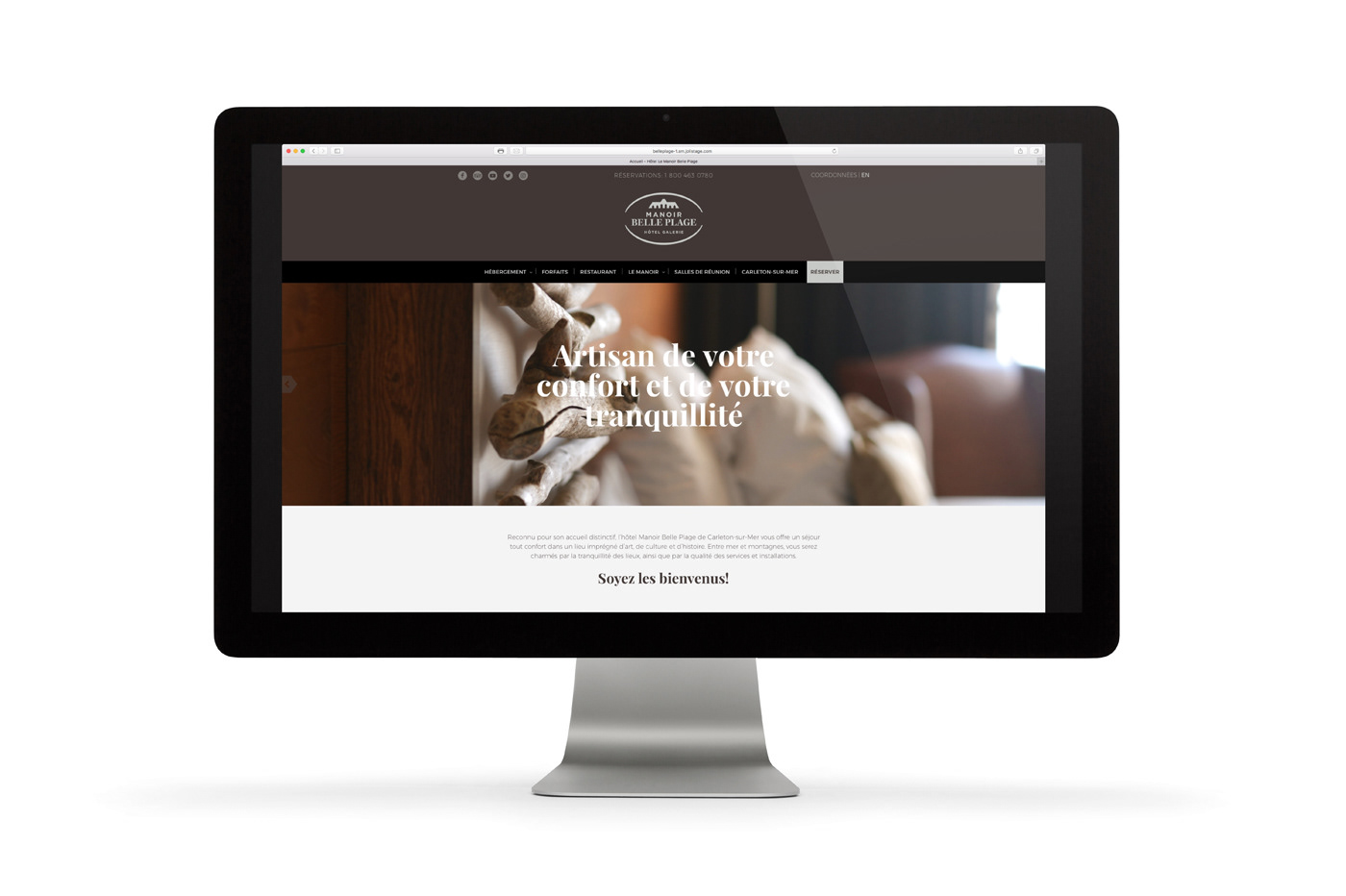 Refonte d'identité visuelle, enseigne, signalétique, site internet et autres items promotionnels pour un établissement hôtelier. Redesign of a visual identity, exterior and interior signage, website and other promotional items for an hotel. Agence: Sebastien Cantin Designer Graphique Designer Graphique: Sebastien Cantin Rédaction: Communication Antilope Production des enseignes et signalétiques: ConceptK Programmation web: Jolifish Photographie: Photo MagBag Client: Manoir Belle-Plage (Carleton-sur-Mer, Québec, CA)