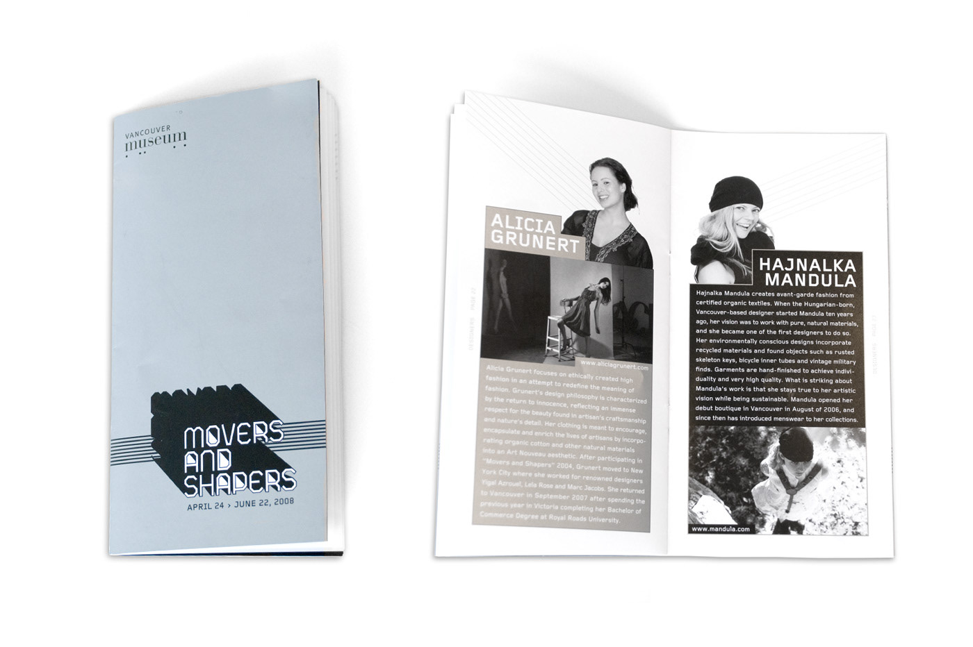Exhibition design and collateral for Movers and Shapers 2008 at the Vancouver Museum. Exhibition design and environmental graphic, Ad, Brochure, Website, and other... Identité visuelle et design de l'exposition Movers and Shapers 2008 au Vancouver Museum. Design d'exposition, Publicité, brochure, site web et autres... Agency: Cause+Affect Creative Director: Steven Cox Art Direction: Sebastien Cantin Graphic Design: Sebastien Cantin, Josiane Marquis Exhibition Design: Steven Cox, Becki Chan Client: Vancouver Museum (Vancouver, British Columbia, CA)
