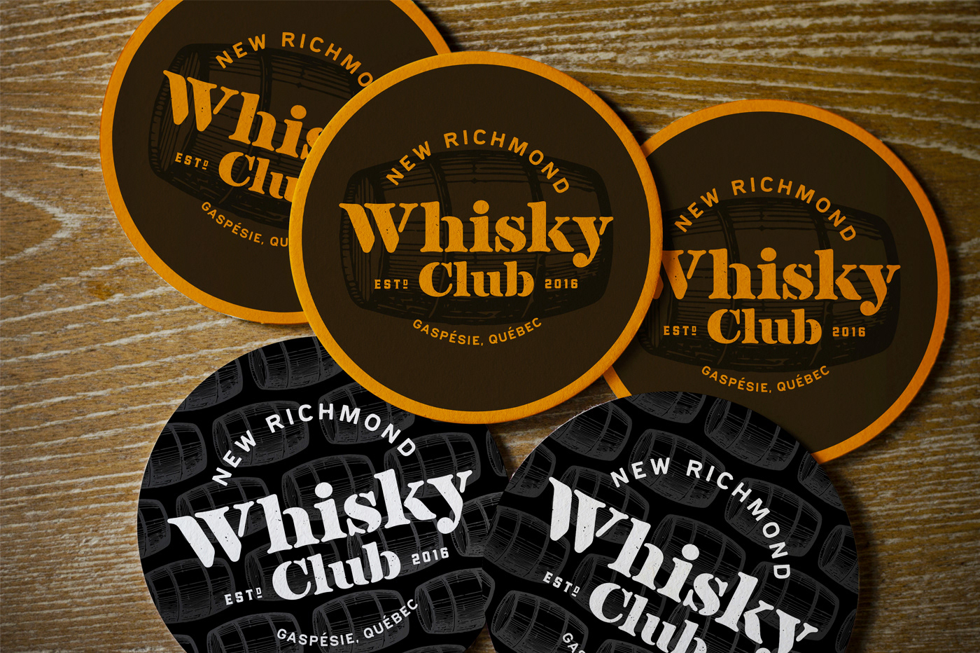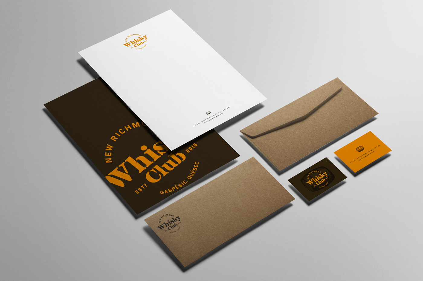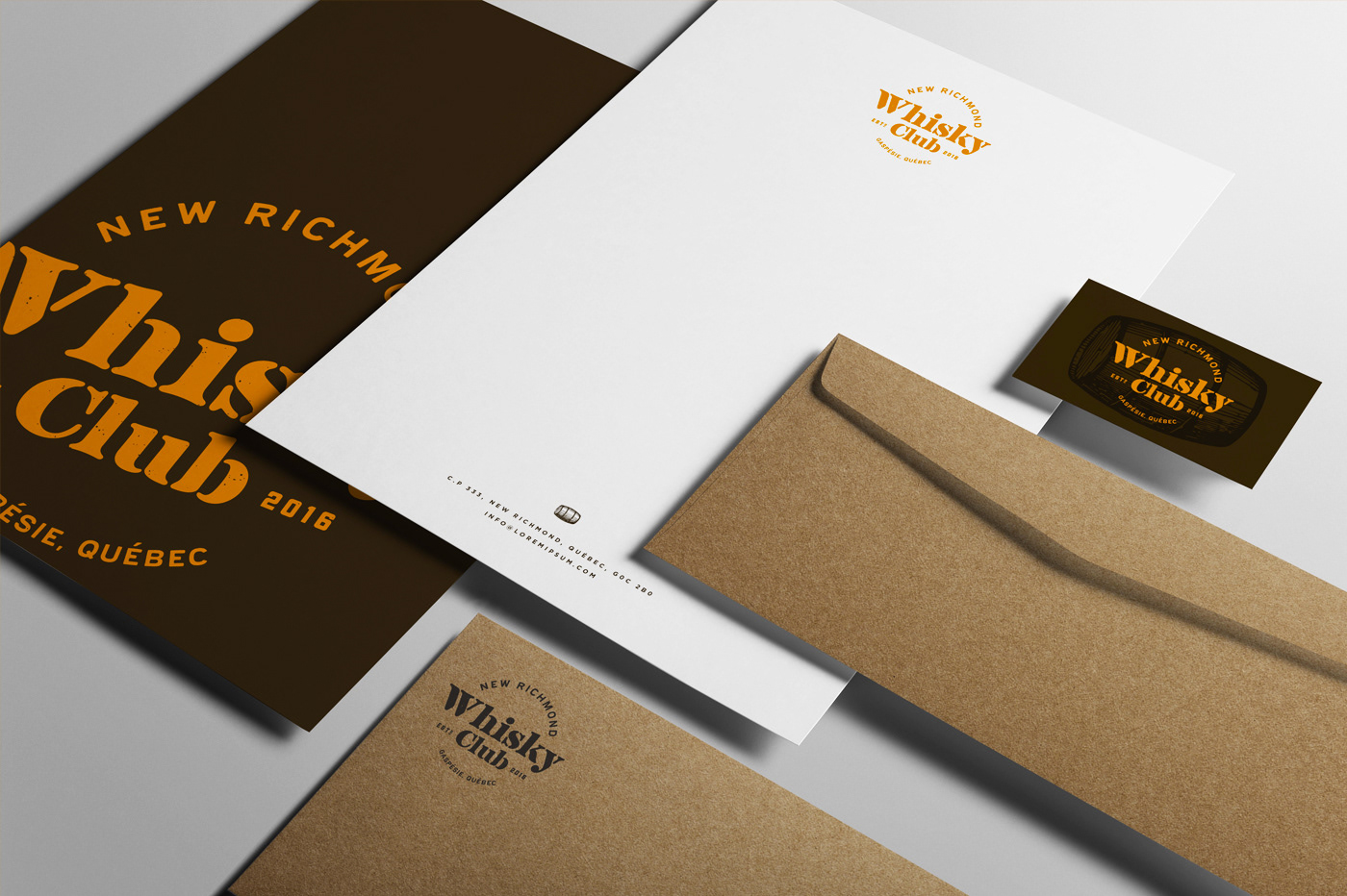 Visual Identity and collateral for a whisky club. Identité visuelle et items promotionnels pour un club de whisky Agency: Sebastien Cantin, Design Graphique Graphic Design: Sebastien Cantin Client: New Richmond Whisky Club (New Richmond, CA)