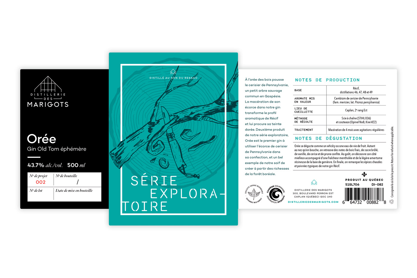 Design and illustration for the Orée Gin label produced by Distillerie des Marigots.