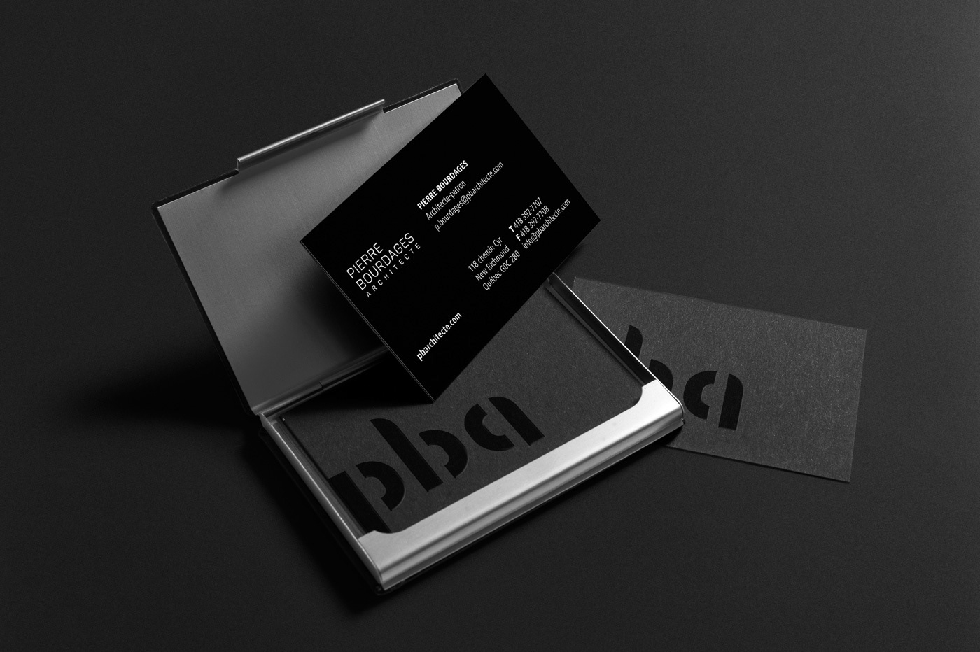 Branding for an architect studio. Identité visuelle pour un bureau d'architecture. Agency: Sébastien Cantin Design Graphique Graphic Design: Sebastien Cantin Client: Pierre Bourdages Architecte (New Richmond)