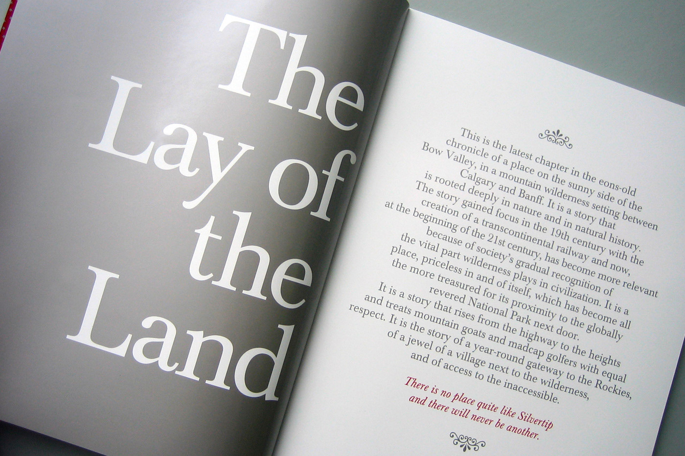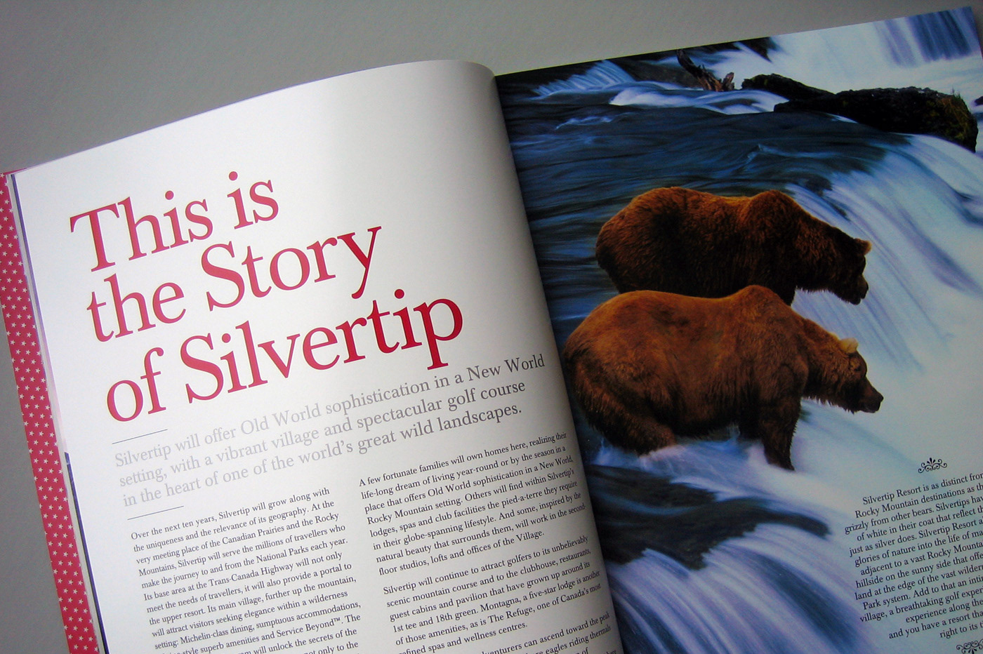 This is a book about the story of the Silvertip Resort in Canmore, Alberta. Livre à propos de l'histoire derrière le complexe de villégiature Silvertip situé à Canmore en Alberta. Agency: Envisioning+Storytelling Creative Director: Paul Roelofs Graphic Design: Sébastien Cantin Writers: Dianna Carr, Paul Belserene Client: Stone Creek Properties (Canmore, Alberta, CA)